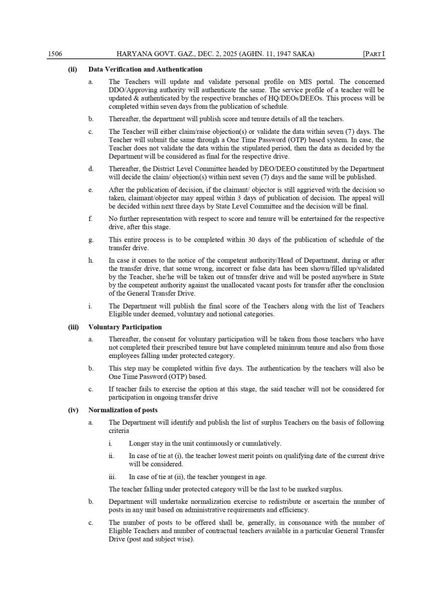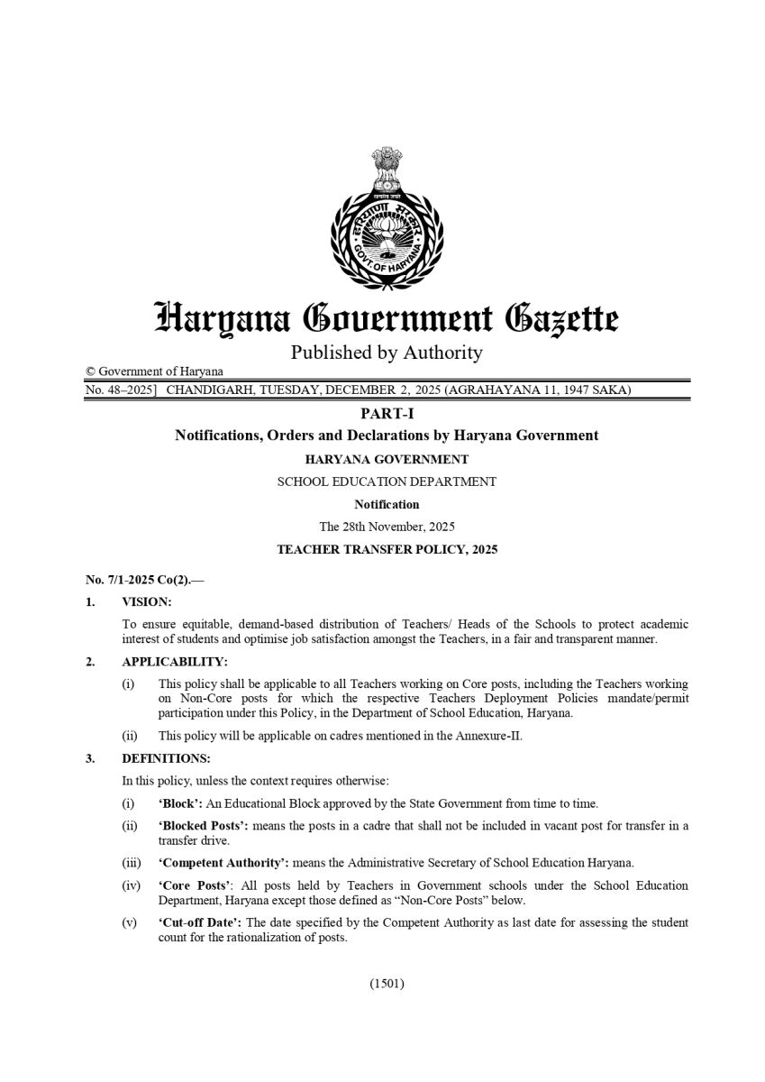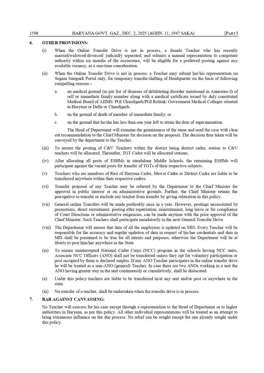 हरियाणा सरकार ने टीचर ट्रांसफर पॉलिसी जारी की: देखिए पूरा नोटिफिकेश