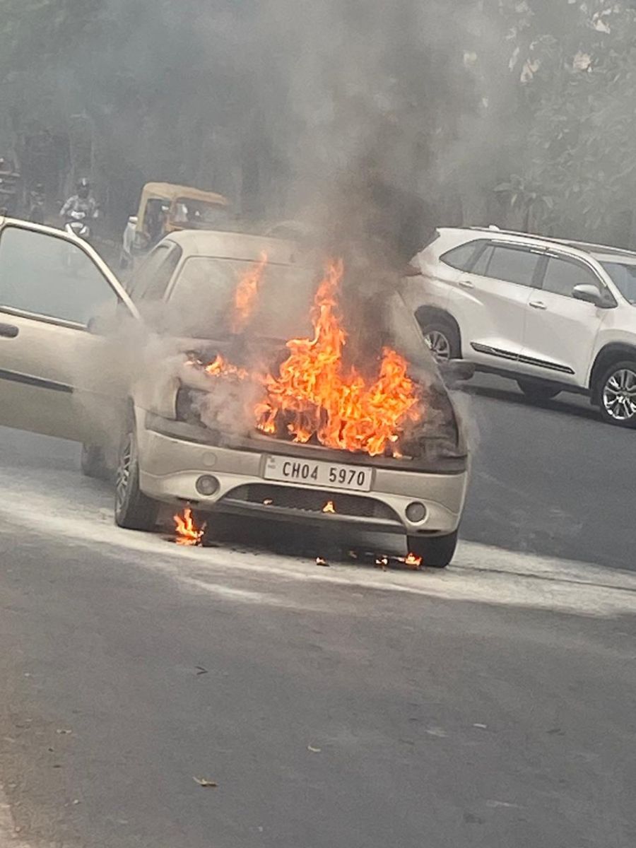 चंडीगढ़ में लोकसभा चुनाव के बीच हादसा; सड़क पर चलती कार में अचानक लगी भयानक आग, अफरा-तफरी, पुलिस-फायर ब्रिगेड पहुंची