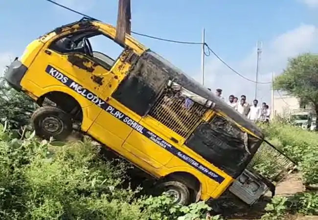 हरियाणा में बच्चों से भरी स्कूल वैन पलटी; ट्रक के अचानक सामने आने से बिगड़ा कंट्रोल, हादसे के बाद चीख-पुकार, आसपास के लोग दौड़े