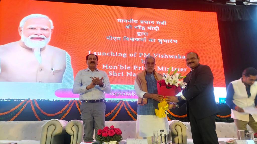 चंडीगढ़, 17 सितम्बर 2023: PM Vishwakarma Scheme Launched: प्रधान मंत्री विश्वकर्मा योजना आज चंडीगढ़ में गवर्नमेंट मेडिकल कॉलेज एंड हॉस्पिटल, सेक्टर 32, चंडीगढ़ में लॉन्च की गई। इस कार्यक्रम के मुख्य अतिथि माननीय बिजली और भारी उद्योग राज्य मंत्री, श्री कृष्ण पाल गुर्जर थे। माननीय अध्यक्ष, हरियाणा विधान सभा और विधायक, श्री ज्ञान चंद गुप्ता, चंडीगढ़ यूटी प्रशासक के सलाहकार श्री धर्मपाल और शिवालिक विकास बोर्ड के अध्यक्ष श्री ओम प्रकाश देवीनगर ने भी इस कार्यक्रम में भाग लिया और संबोधित किया।