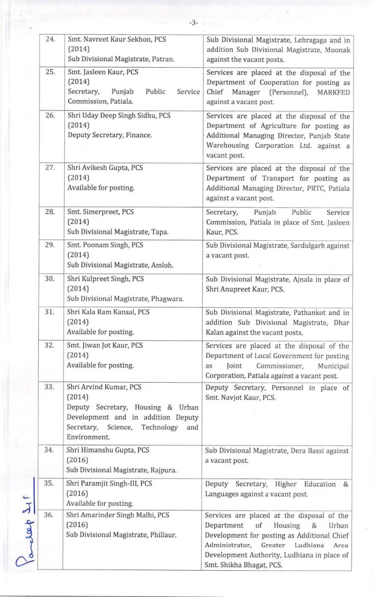 Punjab IAS|PCS Transfers Postings