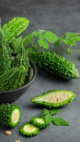 वजन घटाने में सहायक करेला कम कैलोरी और फाइबर से भरपूर होता है, जिससे भूख कम लगती है और वजन नियंत्रण में रहता है।