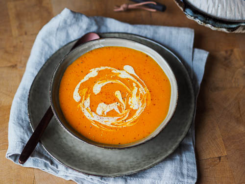 सूप में ताजगी के लिए नींबू का रस भी डाल सकते हैं। गाजर के सूप को कटोरी में डालें और ताजे धनिया पत्तियों से सजाएं।