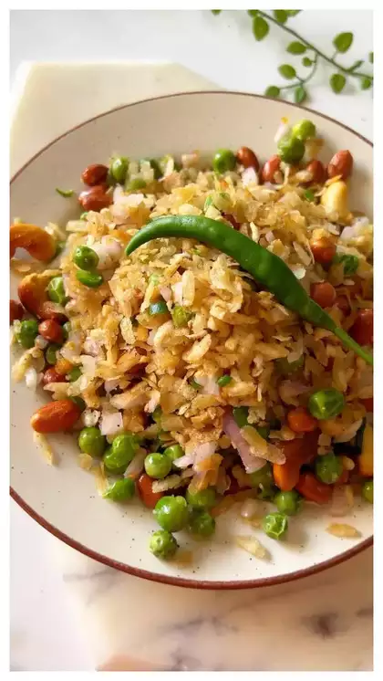 आपका बिहारी स्टाइल चूड़ा भुजा तैयार है। इसे सर्विंग प्लेट में निकालें और मूंगफली या तिल के साथ गार्निश करें।