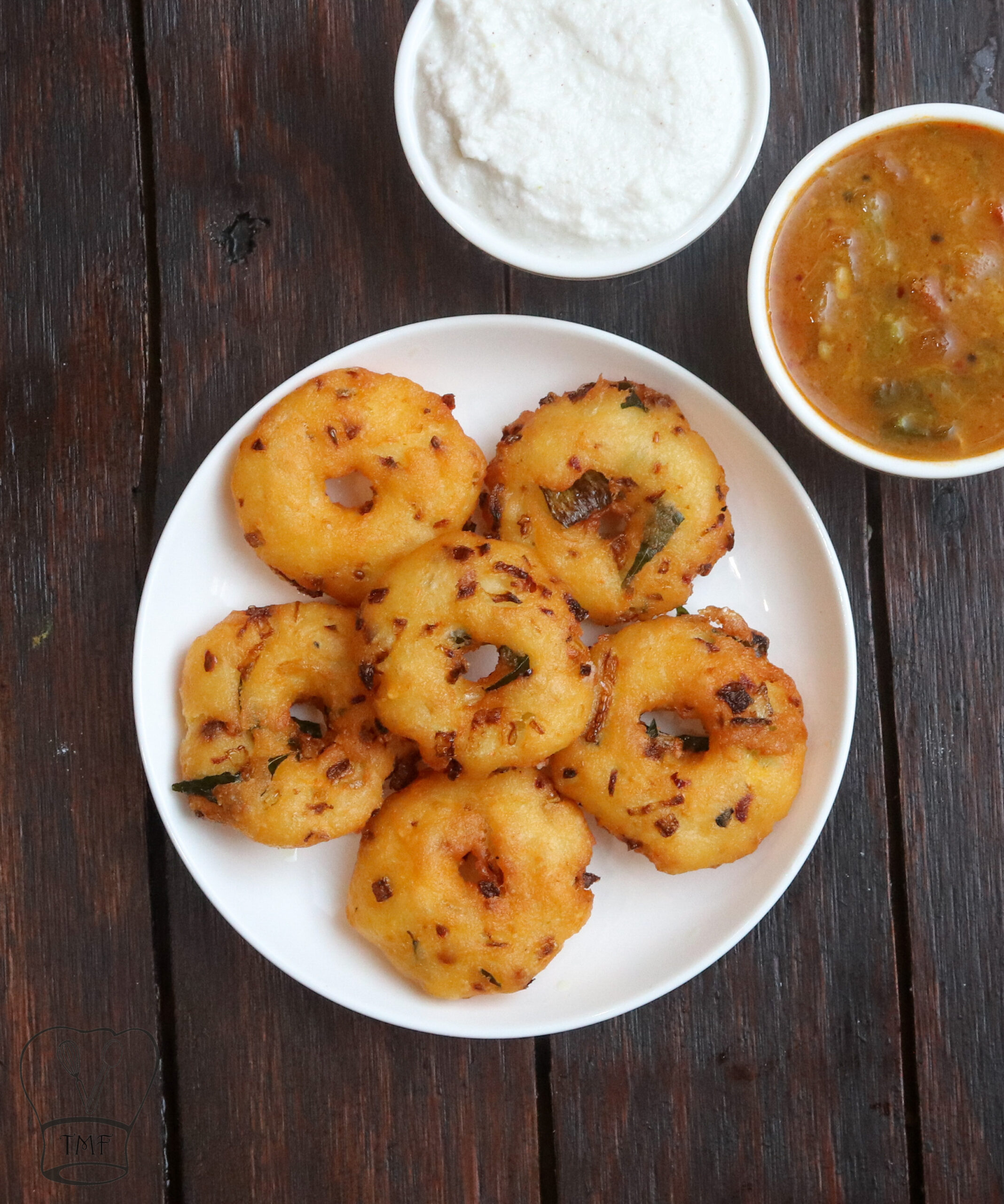 वड़े दोनों तरफ से अच्छे से तल जाने पर इन्हें एक प्लेट में निकाल लें। वड़ा तैयार है और इसे सांभर और चटनी के साथ सर्व करें।