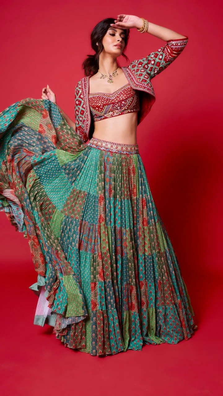 डायना पेंटी मिरर वर्क वाले लहंगा-ब्लाउज के सेट में किसी ब्यूटी क्वीन की तरह पोज देती दिखाई दे रहीं हैं।