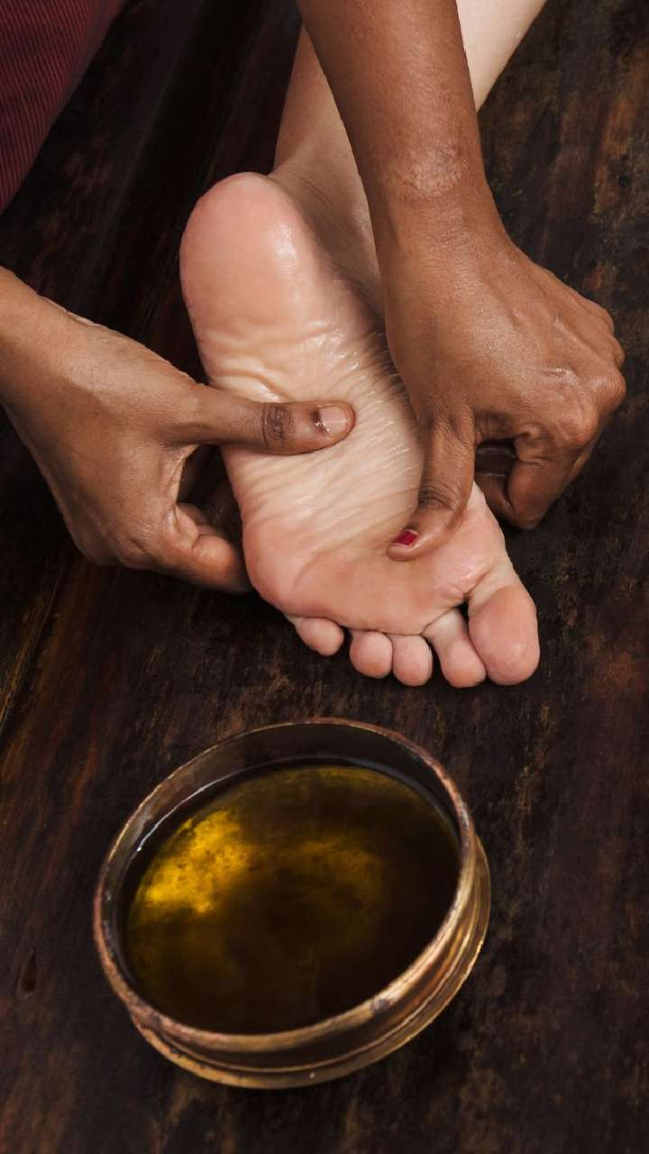 पैरों की त्वचा की देखभाल यमित मालिश से पैरों की त्वचा स्वस्थ और चमकदार बनी रहती है।