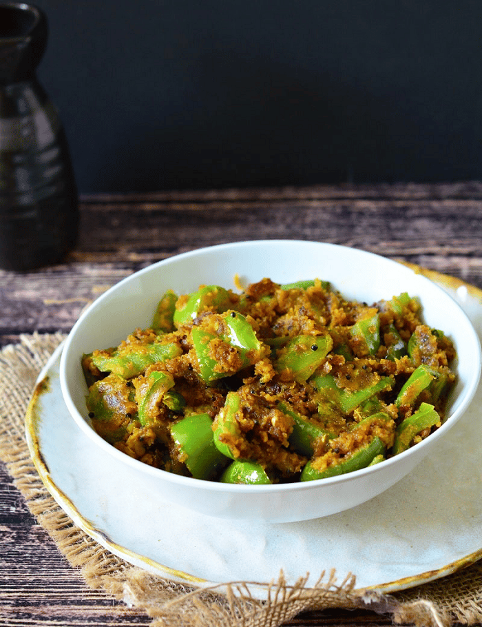 अब शिमला मिर्च डालें और अच्छे से मिलाकर ढककर 5-7 मिनट तक पकने दें, ताकि शिमला मिर्च नरम हो जाए, लेकिन उसका रंग और क्रंच बना रहे।