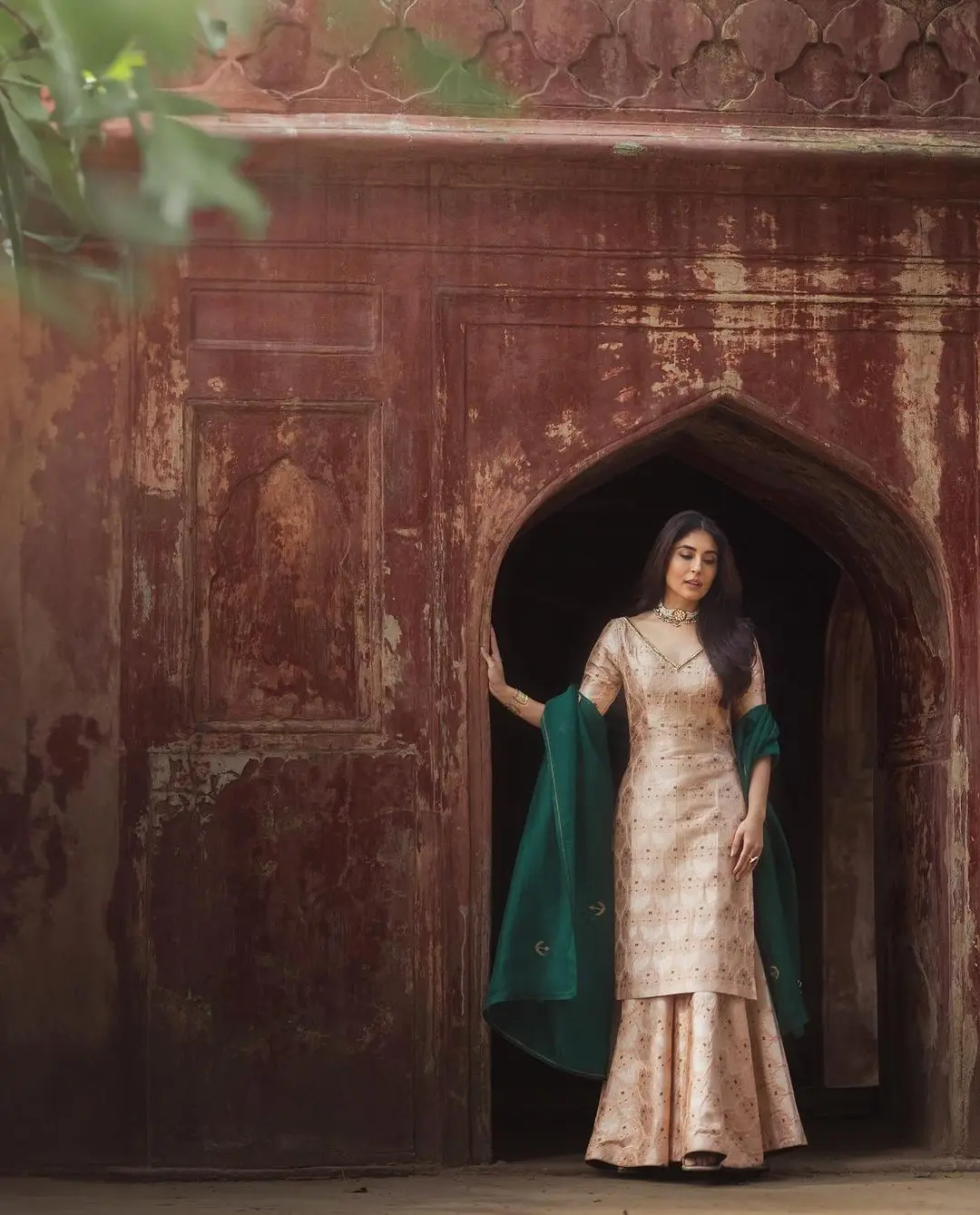 कृतिका कामरा के इस अनारकली सूट में हैवी वर्क किया गया है. उनके शरारा सूट में गोल्डन एंब्रायडरी की गई है.