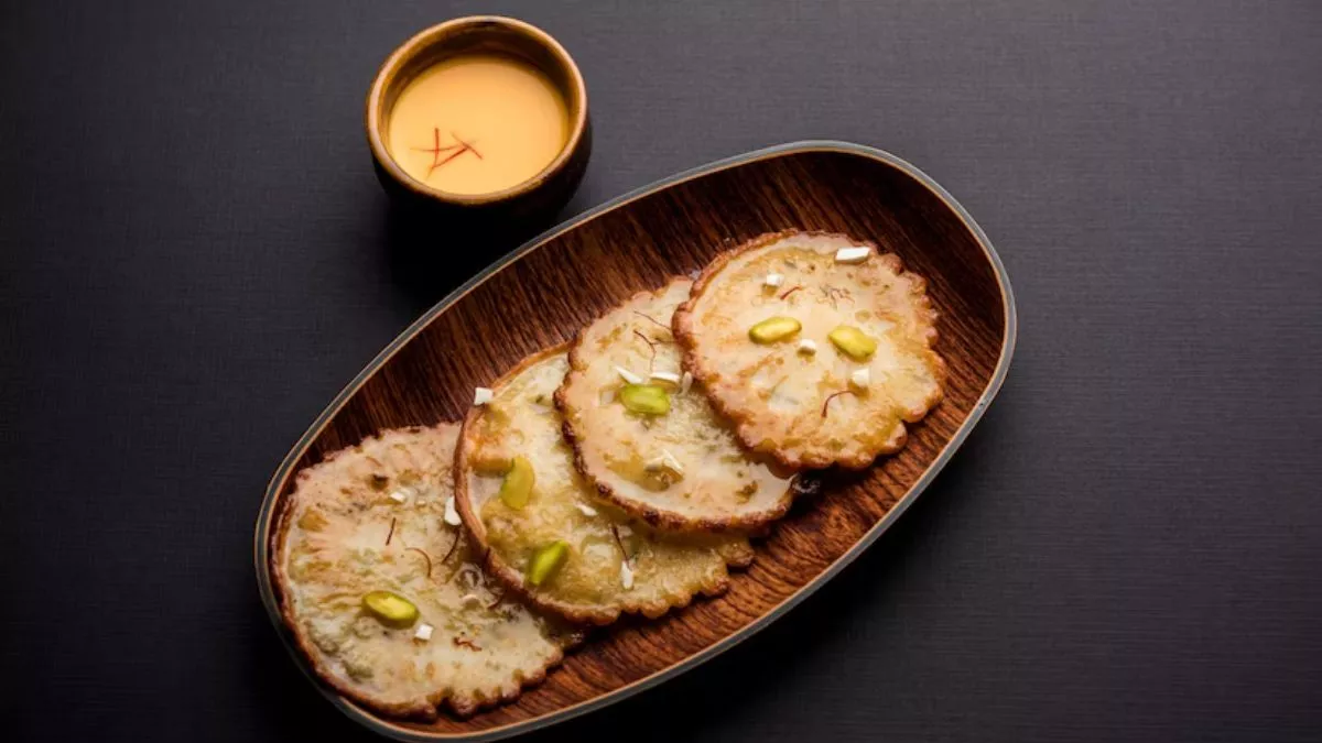 बैटर को एक छोटे चमच से लेकर गरम घी में डालें। ध्यान रखें कि तेल/घी मध्यम आंच पर हो ताकि मालपुआ अंदर से पक सके। जब मालपुआ एक साइड से सुनहरा और क्रिस्पी हो जाए, तो उसे पलट दें और दूसरी साइड से भी तली हुई गोल्डन ब्राउन करें।