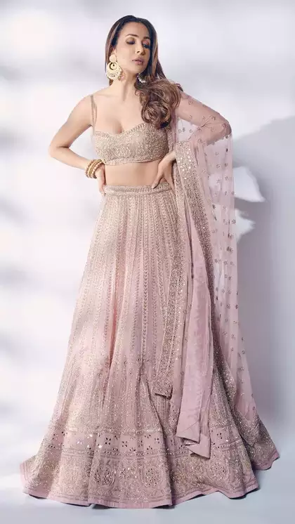 मलाइका फुल स्लीव्स वाली स्टाइलिश चोली और लहंगे में नजर आ रही हैं। इस लुक के साथ उन्होंने दुपट्टा नहीं लिया है।