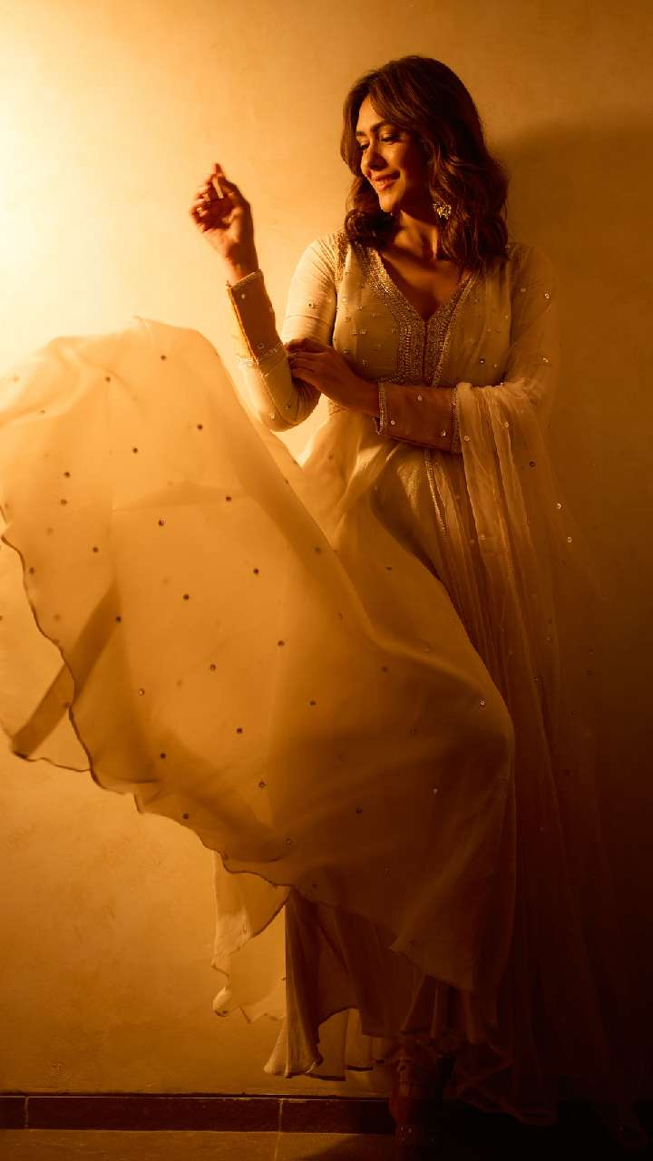 मृणाल का ये फ्लोरल प्रिंटेड अनारकली सूट ट्राई कर सकती हैं. इस तरह के आउटफिट टाइमलेस होते हैं
