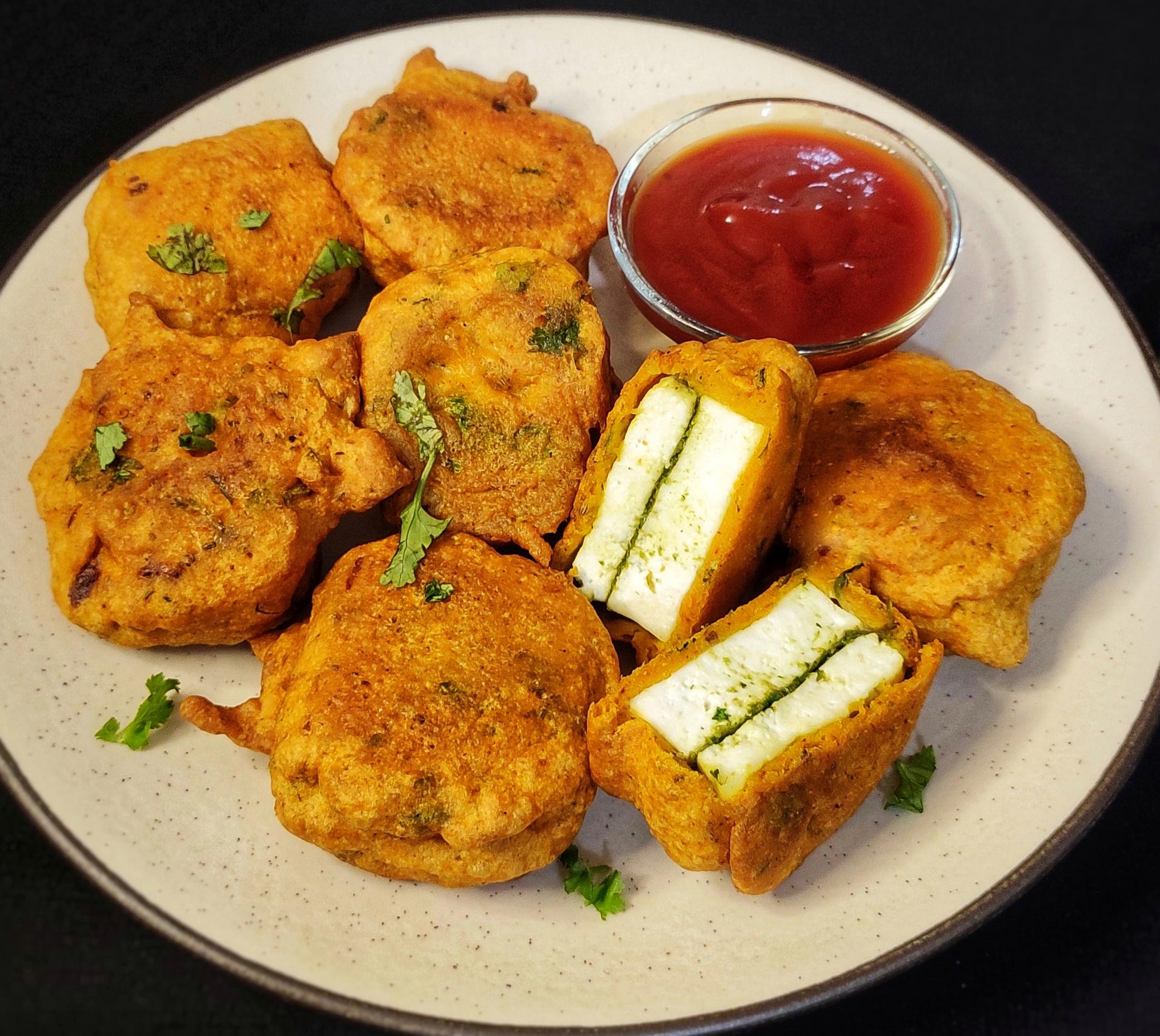 गर्मागर्म पनीर पकोड़े हरी चटनी या टमाटर सॉस के साथ सर्व करें।