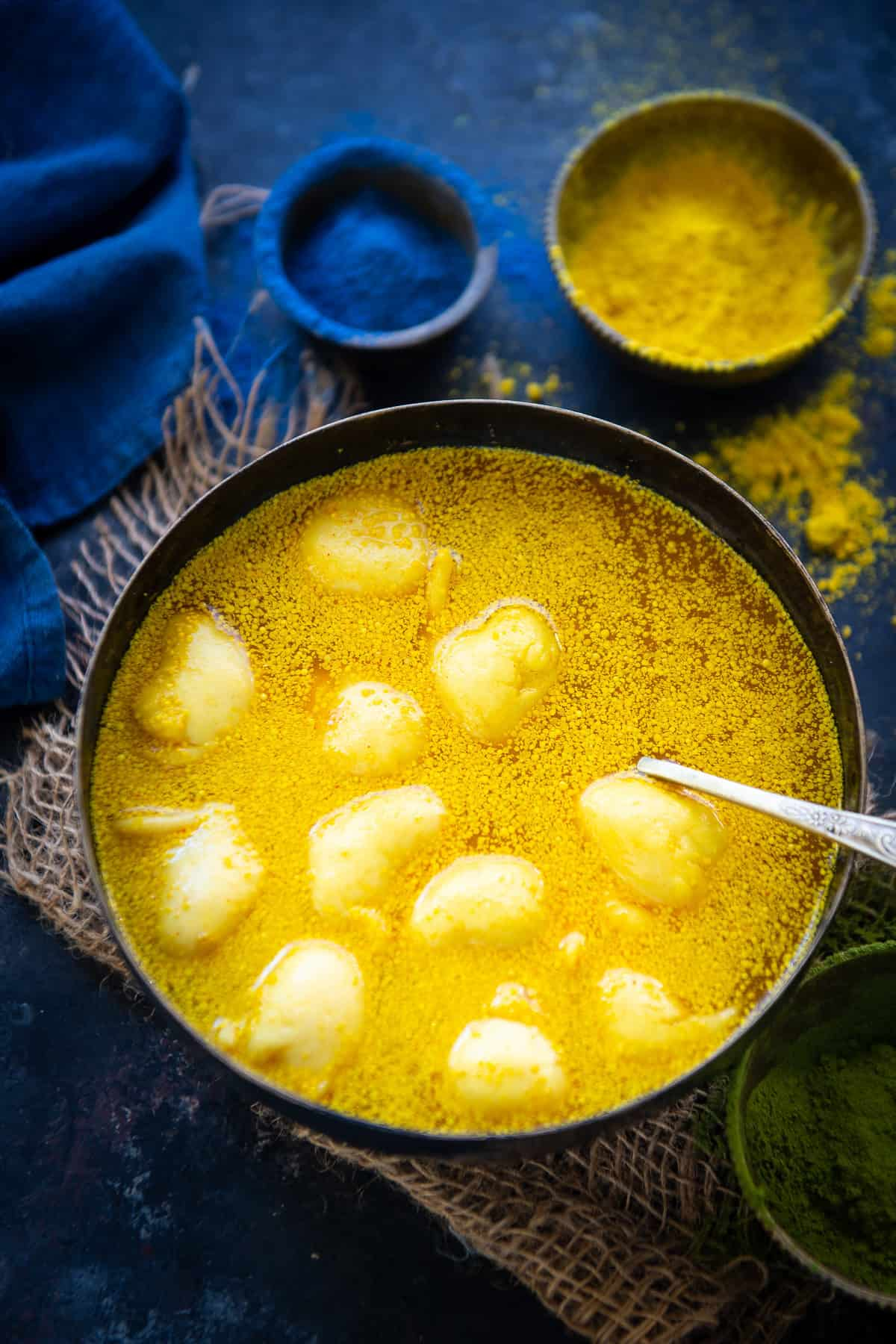 जब यह पानी उबालने लगे, तो इसमें लाल मिर्च पाउडर, अदरक पेस्ट और हींग डालकर अच्छे से मिला लें। अगर आप थोड़ा मीठा स्वाद चाहते हैं, तो इसमें गुड़ या चीनी भी डाल सकते हैं।