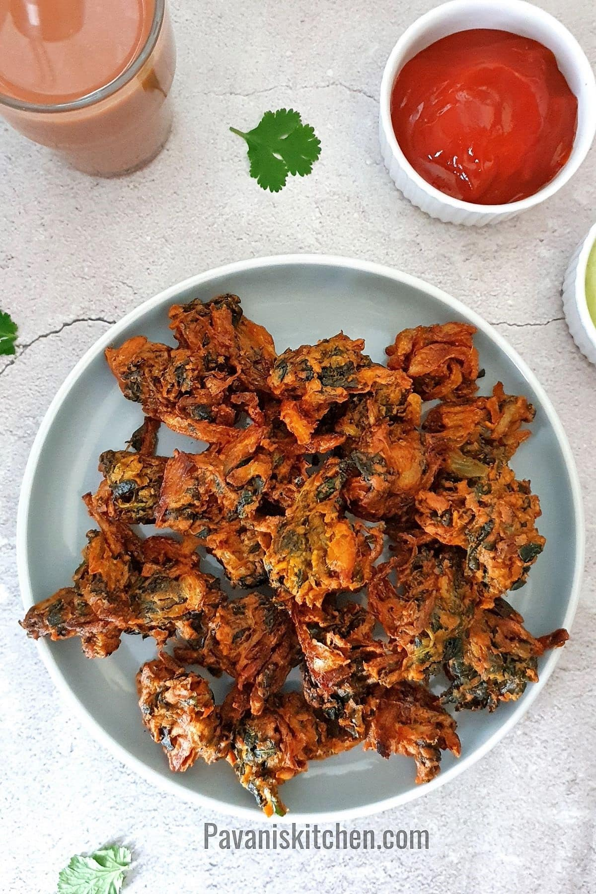 मध्यम आंच पर पकोड़ों को सुनहरा और कुरकुरा होने तक तलें।पालक पकोड़े को हरी चटनी, इमली की चटनी, या दही के साथ गरमागरम परोसें।