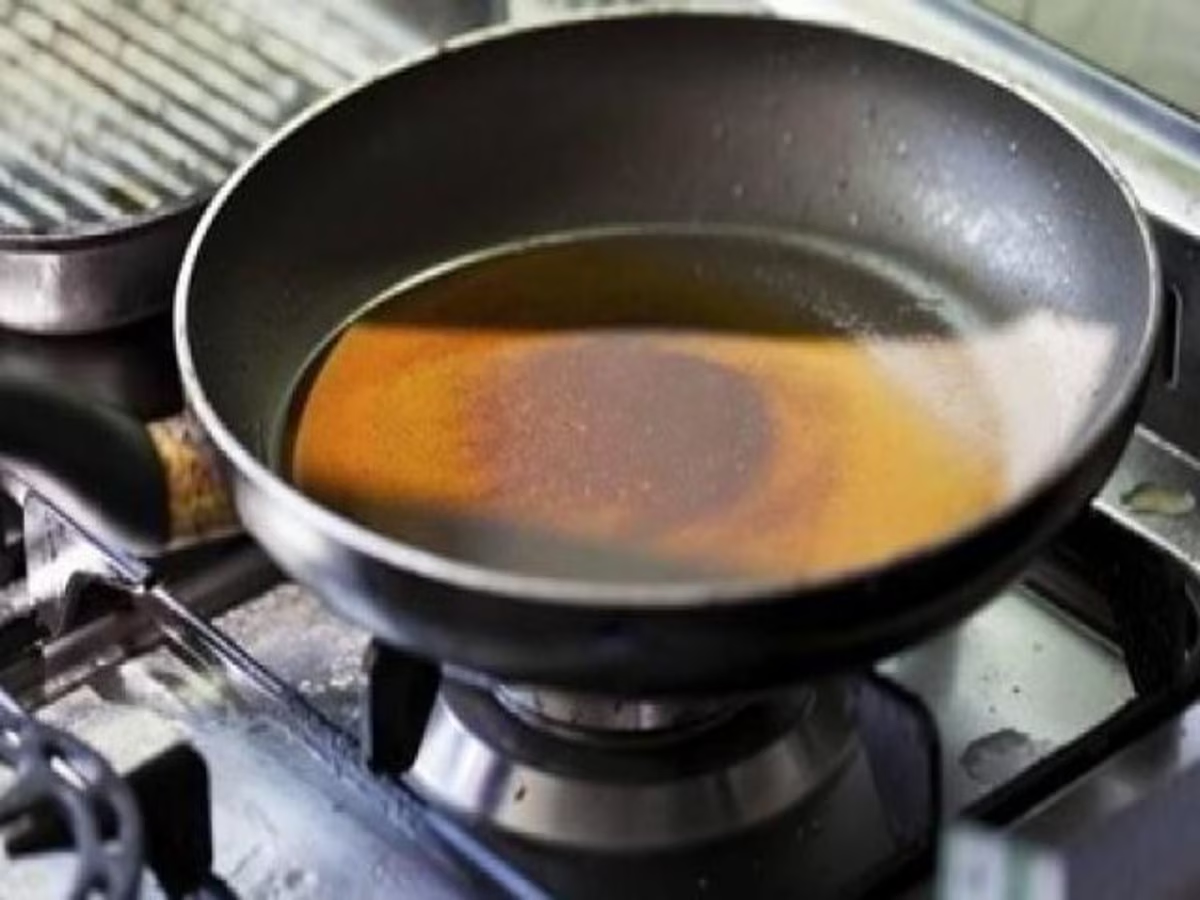 तेल को छानकर पुनः उपयोग करें कढ़ाई में बचे हुए तेल को छान लें, ताकि उसमें कोई भी जले हुए खाने के अवशेष या गंदगी निकल जाए।