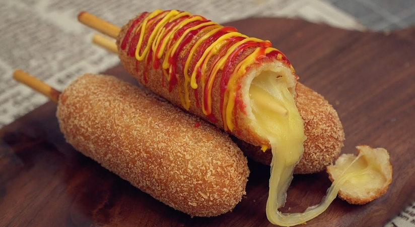 तैयार किए हुए कॉर्न डॉग्स को गरम तेल में डालें और गोल्डन ब्राउन और क्रिस्पी होने तक तलें।