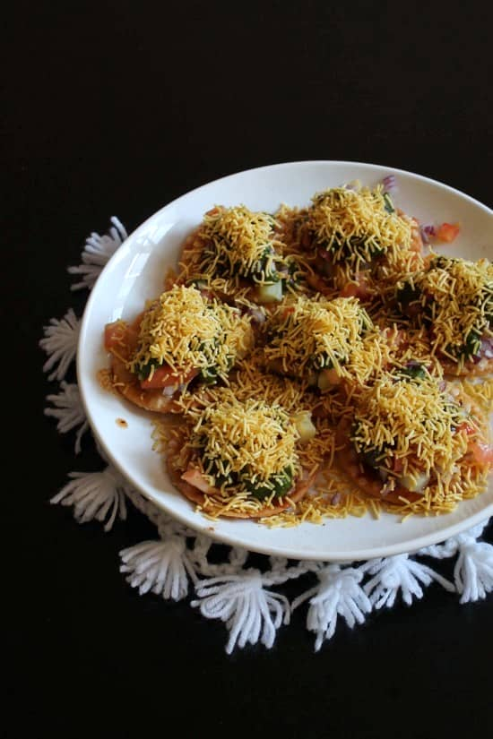 दही भल्ला दही और पकोड़ों का मिश्रण, जिसे मीठी और खट्टी चटनी के साथ परोसा जाता है।