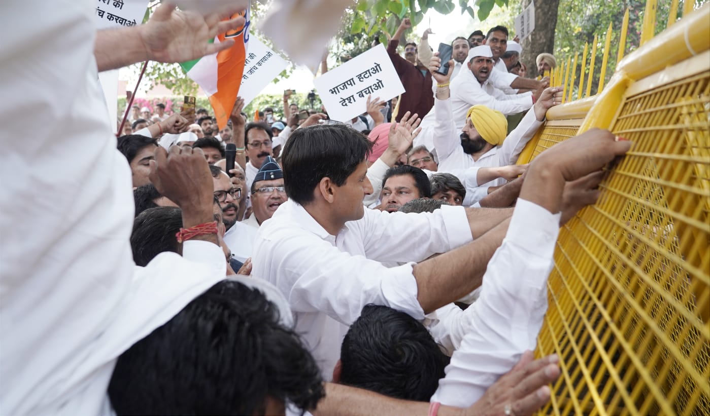 हिंडेनबर्ग रिपोर्ट की जेपीसी से जांच की मांग को लेकर कांग्रेस का जोरदार प्रदर्शन
