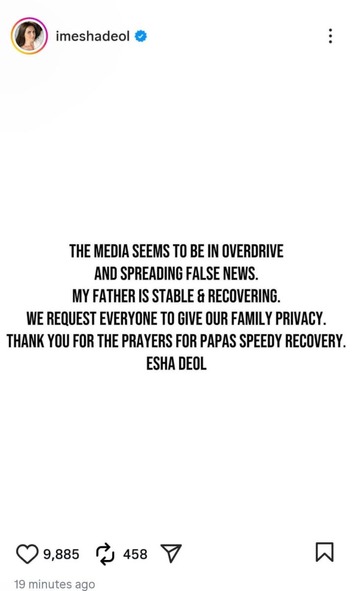 अर्थप्रकाश इस खबर की पुष्टि नहीं करता क्योंकि हाल ही में उनकी बेटी ईशा देओल ने इन ख़बरों का खंडन किया है